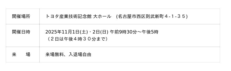 2025年11月1日(土)・2日(日)にトヨタ業技術記念館にて展覧会