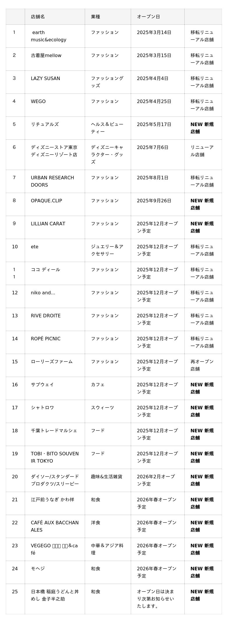 ~イクスピアリ開業25周年~イクスピアリ(R)リニューアルのお知らせ(第四弾) 合計25店舗がオープン!