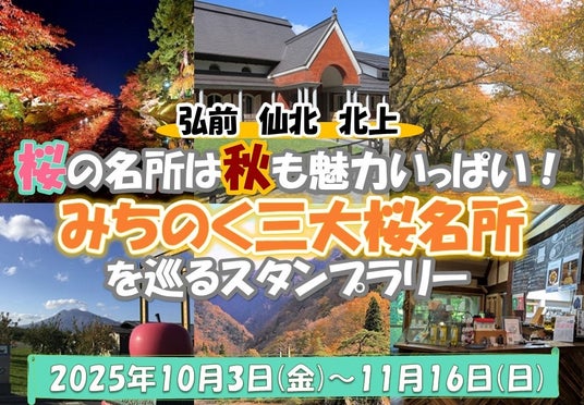 一般社団法人日本自動車連盟(JAF)岩手支部(支部長 千葉 泰)は、2025年10月3日(金)から11月16日(日)にかけて開催される「みちのく三大桜名所を巡るスタンプラリー」(主催:弘前市、仙北市、北上市)に協力します。