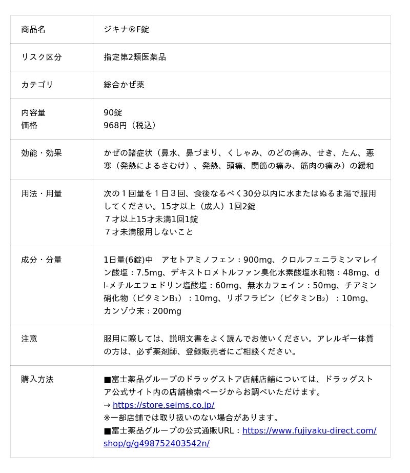 ジキナ(R)ブランドは、風邪や鼻炎の症状を中心とした医薬品ブランドです。今回、ジキナ(R)ブランドの総合かぜ薬シリーズの7つ目の商品として、「ジキナ(R)F錠」を新発売します。