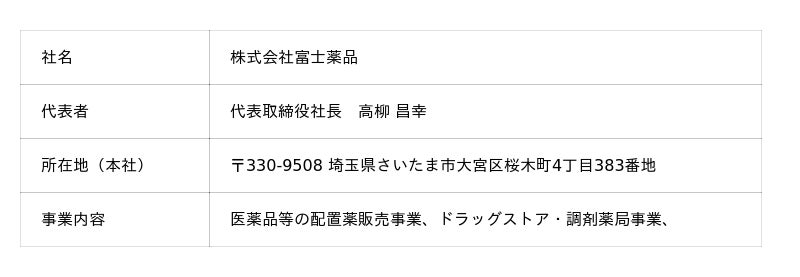 【株式会社富士薬品 会社概要】 URL:https://www.fujiyakuhin.co.jp