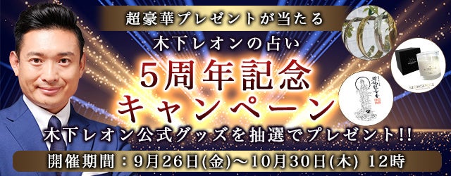 株式会社レンサ(本社:東京都渋谷区、代表取締役:武井哲也)は、2025年9月26日(金)より、運営する公式占いサイト『木下レオンの占い』にて、「5周年記念キャンペーン」の提供を開始いたしました。