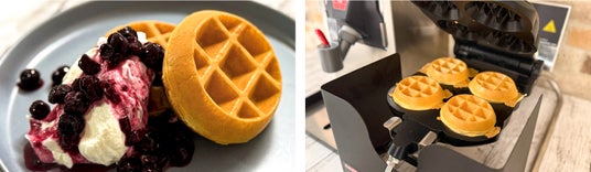 この度のワッフル提供は、お客様ご自身でお楽しみいただく体験型メニューです。伝統のレシピで作られた「GOLDEN MALTED」の生地を専用のワッフルマシンに流し込み、待つこと約3分。甘く香ばしい香りと共に、外はサクッ、中はふんわりとした黄金色のワッフルが目の前で焼き上がります。あとは王道のメイプルシロップやブルーベリーソースをはじめ、ベーコンや玉子など様々なトッピングを組み合わせてオリジナルのワッフル作りをご体験ください。