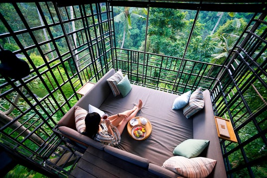 バリ島・ウブドの市街地から離れ、緑豊かなジャングルや世界遺産の棚田に囲まれた一角に位置する星のやバリ。まるで森の中に浮いているようなカフェ・ガゼボで特別なティータイムを楽しめます。(*3)