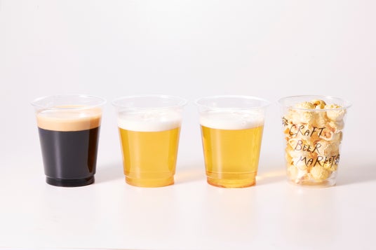 クラフトビアマーケット、ビール飲み比べ3種類、ポップコーン