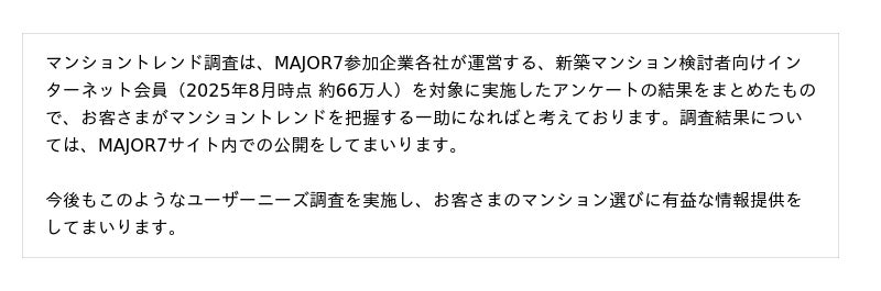 ~新築マンションポータルサイト「MAJOR7」マンショントレンド調査~
