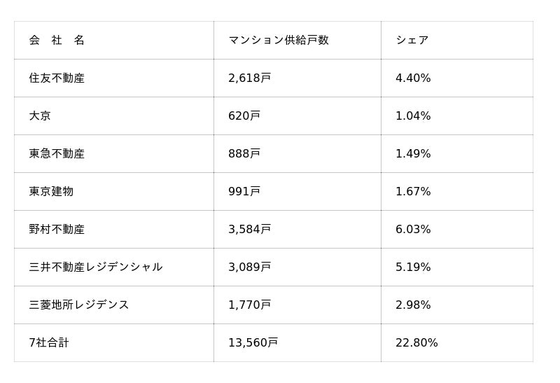 住友不動産株式会社、株式会社大京、東急不動産株式会社、東京建物株式会社、野村不動産株式会社、三井不動産レジデンシャル株式会社、三菱地所レジデンス株式会社の不動産大手7社は共同で、豊富な新築マンション販売情報とマンション選びに役立つ様々な関連情報を提供する新築マンションポータルサイト『MAJOR7』(https://www.major7.net/)を2000年4月に開設し、多くのお客さまにご利用いただいております。