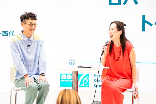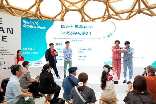 ASCジャパンは、2025年9月29日(月)、大阪・関西万博「Blue Ocean Dome」で開催中の「選んで守る魚の未来Week」にて、人気芸人のロバート・馬場さん、ミサイルマン・西代さん、フースーヤさんを迎えた1時間のトークセッションイベントを開催しました。