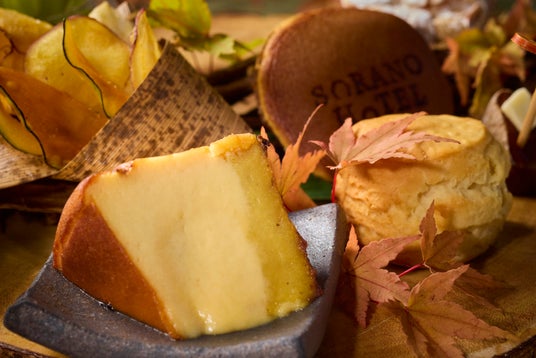 ホテルオリジナル日本酒「立飛のそら」の酒粕を練り込んだ風味豊かなスコーンや、さつまいもの自然な甘さと食感を生かした焼き芋バスクチーズケーキ。フルーティーでまろやかな味わいが女性に人気のクラフトビール「立飛ヴァイツェン」で仕立てたぶどうのミニパフェ。干し柿やさつま芋と合わせたバターとローズソルトは、スコーンと一緒に楽しむことで異なる表情を生み出します。さらに、後藤牛のローストビーフや彩り豊かな「大地のサラダ」、ホテルスタッフが丁寧に仕込む自家製味噌の焼きおにぎり、自家製漬物など、からだにも心にもやさしいソラノホテルならではのスイーツとセイボリーをご堪能いただけます。