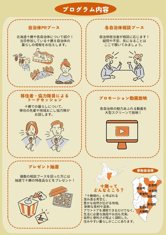 各自治体担当者や協力隊をはじめとする移住経験者が、十勝での暮らしや協力隊の活動について紹介するとともに、参加者の疑問や不安に直接お答えします。