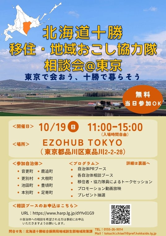 『北海道十勝移住・地域おこし協力隊相談会@東京』の開催について