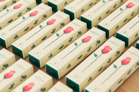 NO.1~NO.8までが一粒ずつ入った8粒入りの箱。描かれた薔薇の咲き具合は、つぼみ、5分咲き、満開の3種類。一輪の花をプレゼントするようなイメージでデザインされています。