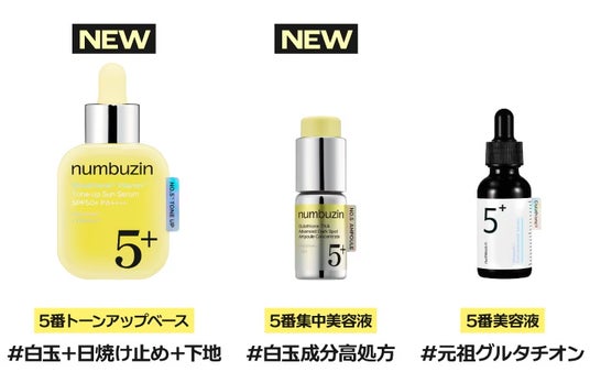 韓国スキンケアブランド『numbuzin(ナンバーズイン)』大人気の5番白玉グルタチオンC*¹シリーズから14か月ぶりの新作、集中美容液とトーンアップベースが日本限定で新発売