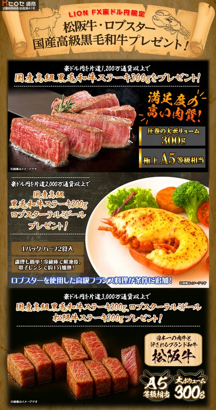 LION FX豪ドル円限定 松阪牛・ロブスター・国産高級黒毛和牛プレゼントキャンペーンが貰える!