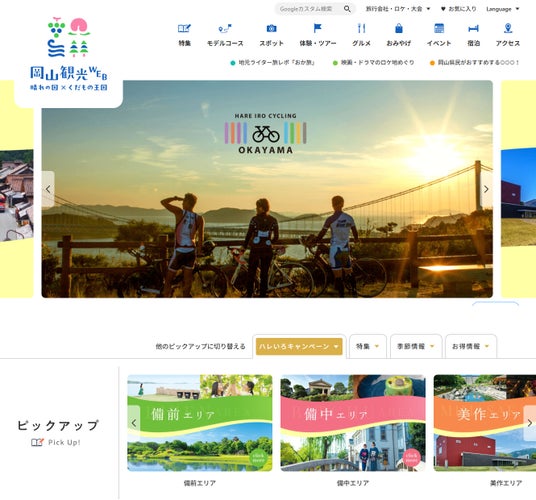 さらに、スポット情報へのバリアフリー情報の追加、カテゴリーごとに切り替え可能なピックアップコンテンツやランキング表示などにより、岡山の観光情報を分かりやすく提供するとともに、県外からの誘客促進と滞在型観光の推進につながるより使いやすく魅力的なサイトへと生まれ変わりました。
