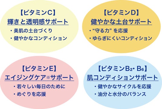 私たちの経験から導き出したのは、"ただ多く摂る"のではなく、"本当に必要な量をしっかり補う"という考え方です。特にビタミンCは、さまざまな肌悩みに関わる「美肌の基本成分」。このビタミンCをはじめとした、健やかなサイクルやコンディションを支える厳選ビタミンを、共に十分な量で継続的に補うこと。