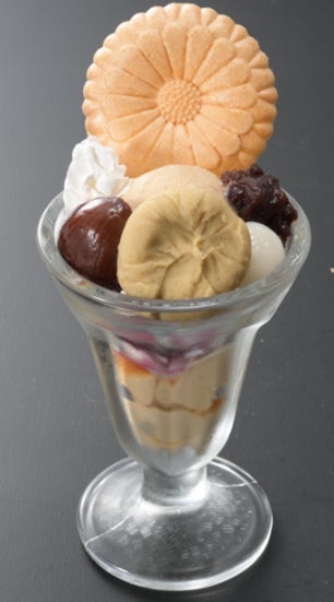 『渋皮栗の秋甘味(あかね)ぱふぇ』 1,500円 秋の味覚を贅沢に味わえる、渋皮栗づくしのパフェが登場。渋皮栗甘露煮、渋皮栗アイス、渋皮栗プリン、栗きんとんに加え、もなかの皮、白玉、小倉あん、ホイップクリームなどを彩り豊かに盛り付けました。