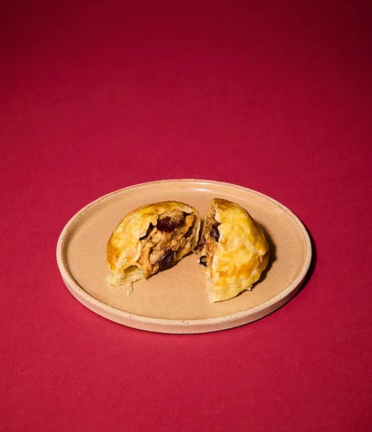 自社製BBQソースでじっくり煮込んだプルドポークに、クランベリーの酸味とマッシュルームの旨みを重ね、華やかなフィリングに仕立ててパイ生地で包みました。ジュニパーベリーのすっきりとした香りとメープルシュガーの甘い余韻が贅沢な味わいを引き立てます。