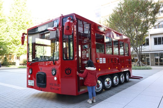 池袋の街を周遊する真っ赤な電気バス「IKEBUS(イケバス)」の車内を、自由に見学したり、写真を撮ることができます。