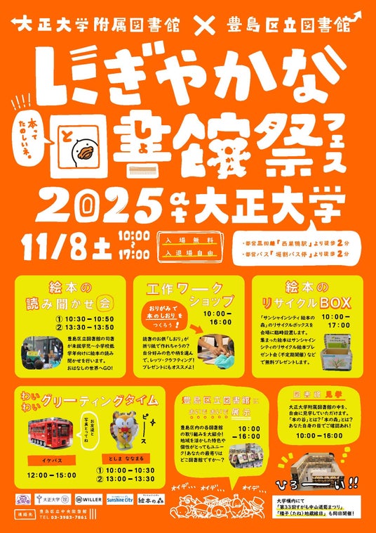 1. 大正大学附属図書館は豊島区立図書館と共同で11月8日(土)に「にぎやかな図書館祭(フェス)」を開催します