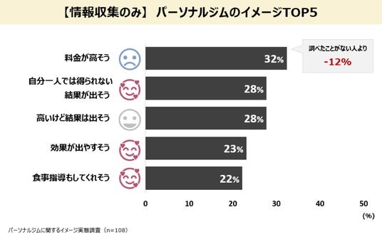 興味はあるけれどまだ情報収集していない人、情報収集をしてみた人、実際に店舗に足を運んだ人…。関心度や行動の段階によって、パーソナルジムへのイメージはどのように変わるのかを調査したところ、思わぬ傾向が明らかになりました。