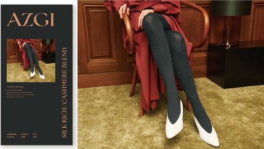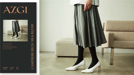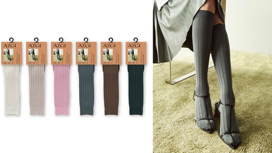 AZGIは持続可能かつ高いファッション性を備えたブランドを目指し、タイツには天然素材、ソックスにはリサイクルナイロン糸などの環境負荷の少ない素材を採用しています。タイツやストッキングは縫い目の凹凸が出にくいフラットシーマを採用するなど、技術の面においてもアツギのクラフトマンシップを惜しみなく注ぎ込みました。美しく心地よく仕上げた最高級レッグウェアで、脚を装う楽しさを発信します。