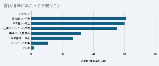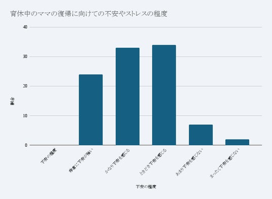 育休中ママの約7割が「非常に不安」または「かなり不安」と回答。特に「睡眠不足」「体力低下」「仕事と育児の両立」への不安が多い。