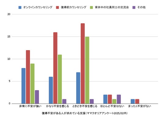 - 一方で「育休中社員同士の交流会」や「上司への具体的ガイド」など、孤立を防ぎ現場で機能する支援も不安がまだ軽いうちの人からは求められている。