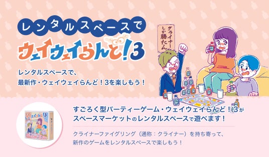 あらゆるスペースを貸し借りできるマーケットプレイス「スペースマーケット」を運営する株式会社スペースマーケット(本社:東京都渋谷区、代表取締役社長:重松大輔、以下、スペースマーケット)は、株式会社シトラム(本社:東京都港区、代表取締役会長:渡邉 康太、代表取締役社長:長江 国輝)が手がける、ドイツ生まれのリキュール「クライナーファイグリング」をコマに使った宅飲みすごろくゲームの最新作『ウェイウェイらんど!(R)3』をスペースマーケットに掲載されている30スペースにて2025年10月1日(水)より提供開始いたします。レンタルスペースならではの貸切空間で、気兼ねなく盛り上がれる新しいあそび体験を提供します。