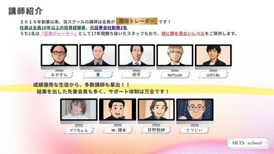 そうした声に応える形で、"日本一楽しく学べる株スクール"として受講生から支持され、注目を集めているのが 創設7周年を迎える会員制の株スクール「METS(メッツ)」です。