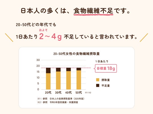玄米ヨーグルトに含まれる食物繊維は、100ℊ当り6.7ℊ。本品約1/6パックで不足分の食物繊維を補うことができるので、毎日の食物繊維習慣にもおすすめです。