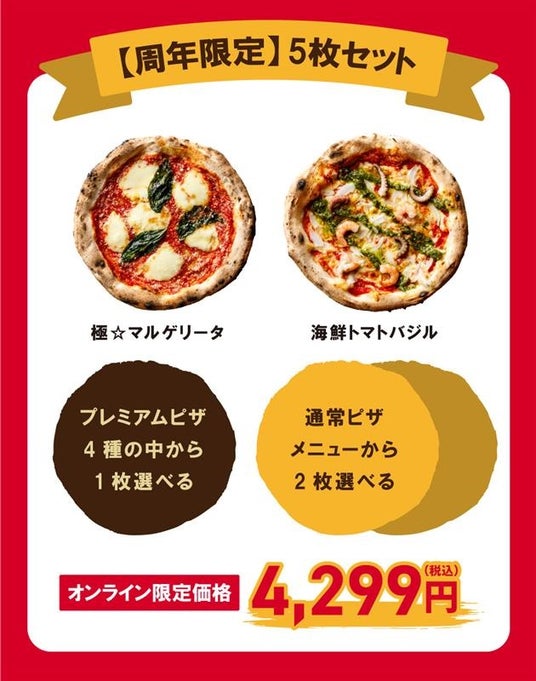 創業14周年を記念した『冷凍ピザ 特別5枚セット』を販売