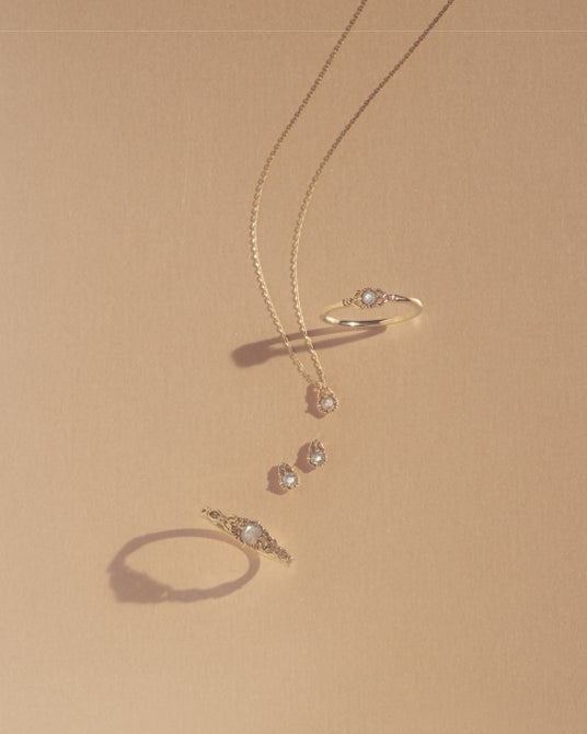 from top ring 24,200yen / necklace 26,400yen / pierced earrings 22,000yen / ring 29,700yen