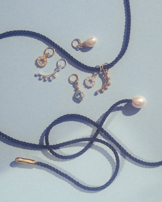 幸せを呼び込むといわれているチャームには、永遠を象徴するサークルや三日月など、幸福を象徴するモチーフをタイニーに表現。