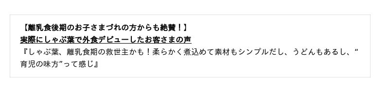 【 しゃぶ葉の0歳からの手ぶら外食デビュー応援! ポイント 】