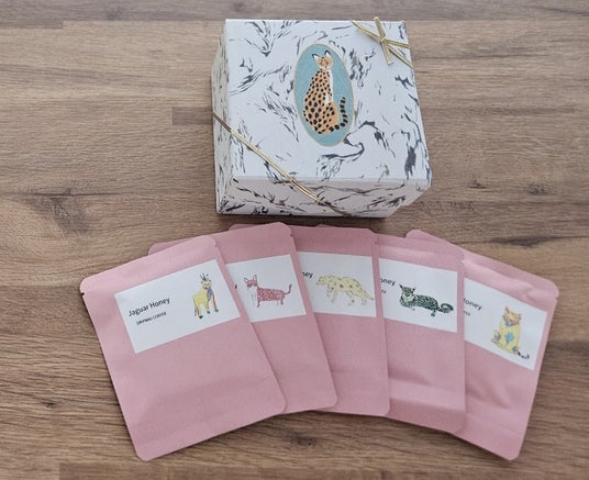 また、パッケージにはメンバーによって描かれた、個性豊かなジャガーたちがデザインされています。絶滅危惧種であるジャガーを守る活動に、工房全体で取り組めた商品になっています。