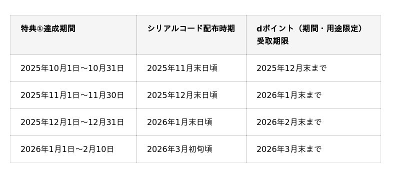 dカード、ドコモ回線契約期間:2025年10月1日(水)~2026年1月31日(土)