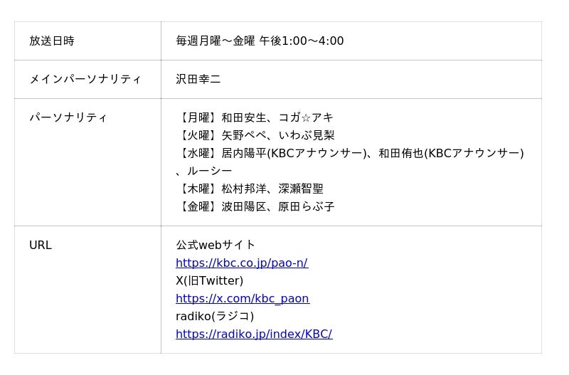 KBCラジオ『PAO~N』放送42年目にして初のオフィシャルファンクラブ「PAO~N わちにんこ倶楽部」を開設!