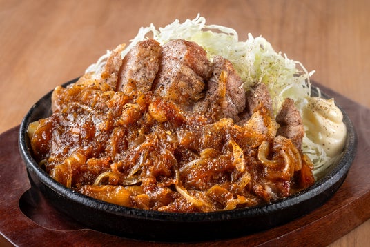 「厚切りとんテキ」の秋バージョン。低温調理で柔らかくジューシーに焼き上げた厚切りの豚肩ロースにジンジャーソースで仕上げたスタミナ系トンテキはがっつりスタミナ系メニューながらも、ボリュームたっぷりの生姜ダレで心なしか爽やかさも感じられる1品。