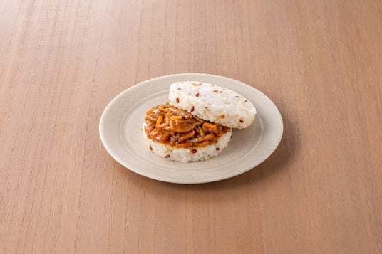 雑穀ライスバーガー ビビンバ味ごま油の香ばしい風味とコチジャンの旨辛が絶妙にマッチした本格的なビビンバ味。もやし、キクラゲ、たけのこ水煮などを具材として採用し、様々な食感が楽しめる仕様に仕上げました。