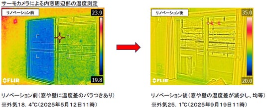 二重サッシと断熱改修工事(天井・外部壁面)により、外気との温度差が小さくなり、ヒートショックなどのリスクも軽減エネルギーのロスを抑えることで環境にも配慮