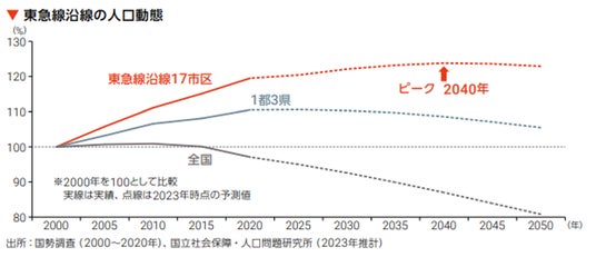 日本全体では人口が減少しているものの、東急線の沿線人口は2040年までは増加と推計されている一方で、沿線の戸建て、マンションを含めた既存住宅の建物老朽化、空き家問題が課題となっています。2024年度より新規事業として本事業を展開しており、新築住宅開発に加え、戸建て、マンションのリノベーション住宅を供給することで、若年層流入と沿線のエリア価値の創出が期待されます。