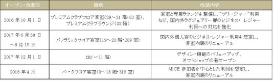 ザ・プリンス パークタワー東京のこれまでのリニューアル