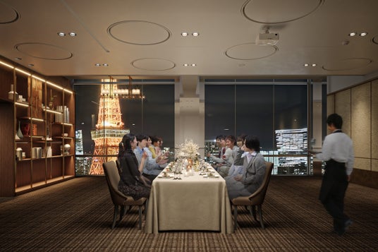 ・Private Dining Brise Verteの個室として、東京タワーを眺めながら西洋料理を堪能。