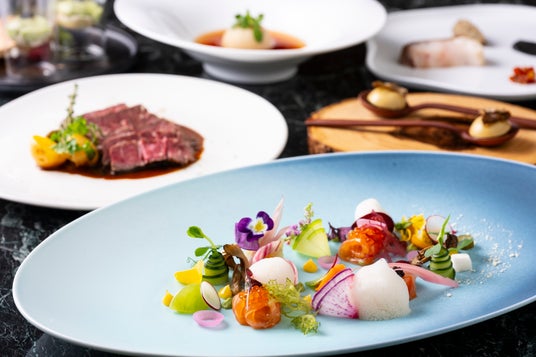 ・国際コンクール入賞経験を持つ料理長の茂手木が、自然の恵みを大切にし、自ら足を運んで選定した契約農家や契約漁港から直送された厳選食材を、それぞれの特性に合った調理法で提供。