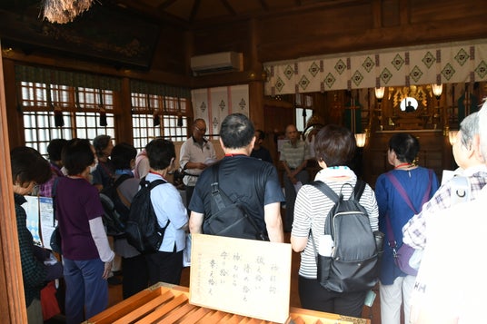 高砂天祖神社で説明を聞く様子
