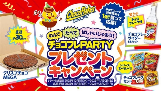 「チョコフレーク」 をたべて、パーティーを盛り上げるオリジナル賞品を当てよう!「のんでたべてはしゃいじゃおう!チョコフレPARTYプレゼントキャンペーン」 を2025年11月3日(月)からスタート