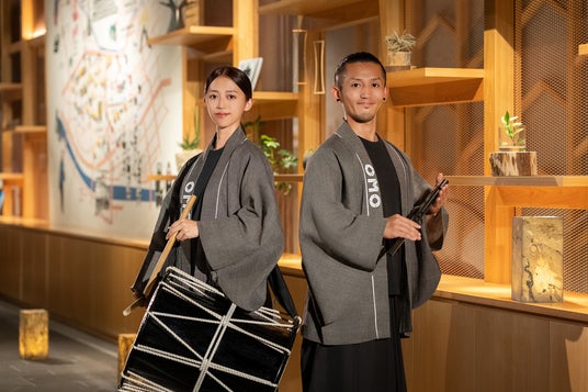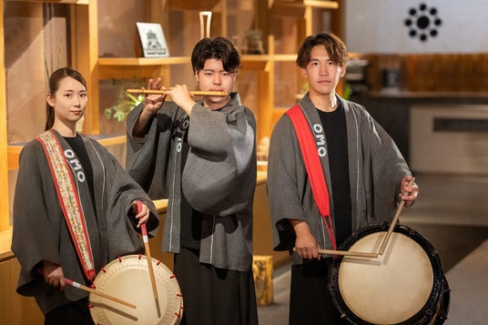 これまで眺めるだけだった夜の熊本城観光が、OMO5熊本のローカルリズムナイトで特別な体験に変わります。ハイライトを飾るのは、かつて各地のお城で合図として響いた太鼓を用い、現代的にアレンジした、OMO5熊本限定の演奏。地元の若手演奏家による力強くもスタイリッシュな響きが非日常の空間を生み出し、人々が自然に集う城下町の賑わいを体感できます。地域で活躍する演奏家たちとともに、熊本らしい宴を演出します。