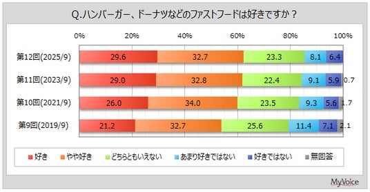マイボイスコム株式会社(東京都千代田区、代表取締役社長:高井和久)は、12回目となる『ファストフードの利用』に関するインターネット調査を2025年9月1日~7日に実施しました。