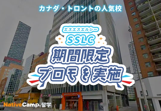 ネイティブスピーカーと回数無制限のオンライン英会話サービス「ネイティブキャンプ英会話」を展開する株式会社ネイティブキャンプ(東京都渋谷区 代表取締役: 谷川国洋)は、海外留学エージェントサービス「ネイティブキャンプ留学」において、カナダ・トロントの人気校「SSLC」期間限定プロモを実施いたします。